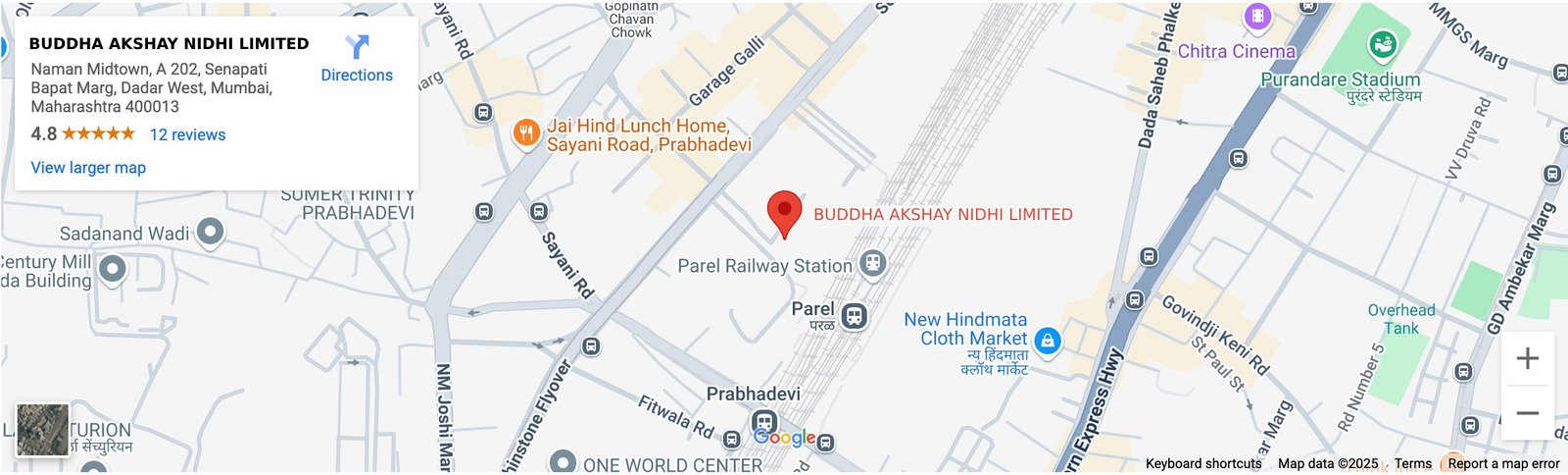 BUDDHA AKSHAY NIDHI LIMITED, Naman Midtown, A 202, Senapati Bapat Marg, Prabhadevi West, Mumbai, Maharashtra 400013